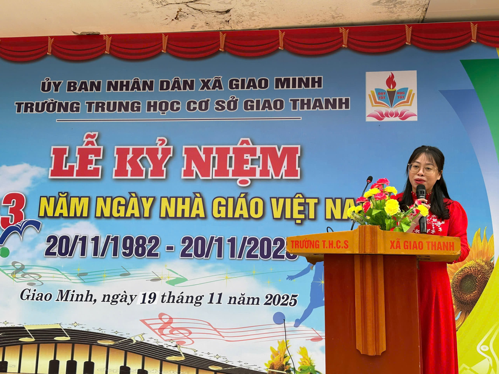 Cô cũng bày tỏ niềm tri ân sâu sắc đến các thế hệ thầy cô đã gắn bó và xây dựng mái trường THCS Giao Thanh ngày một khang trang, chất lượng và giàu truyền thống.